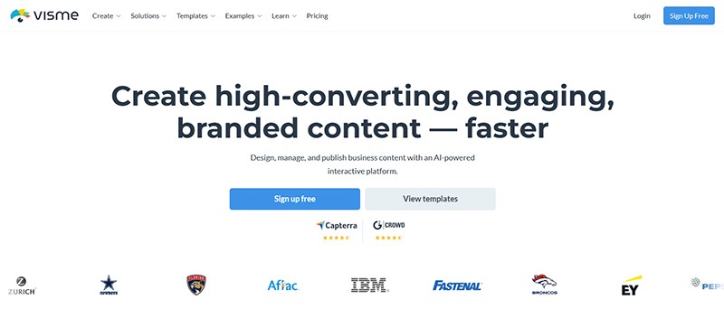 If your team does plenty of presentations, reports, infographics, and social media content, Visme is the tool you need in 2026. It’s an all-in-one visual content platform that provides data-driven visuals, brand kits and templates, and efficient collaboration and sharing features.