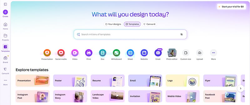 Canva is an online design website with tools to let you go DIY in your designs. It’s free to use, but the paid version offers many possibilities that you wouldn’t think of hiring a designer. With it, you can just do all the designing yourself.