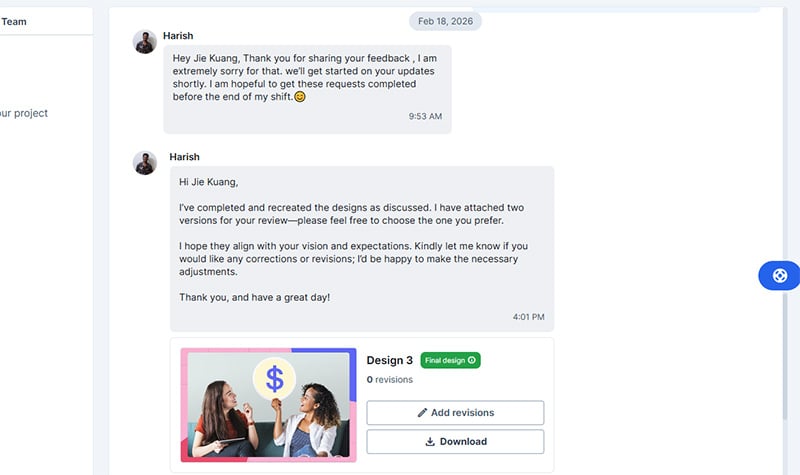 On the other hand, Penji has team members you will be chatting with. From your project description to revisions of your design, you will be communicating with Penji’s designers.