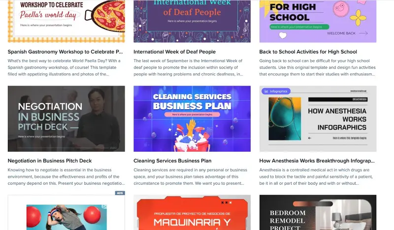 SlidesMania’s 300+ free designs are mostly geared towards more lighthearted presentations. These include flashcards, interactive games, and even Valentine’s Day proposals. If you’re looking for cute presentation designs to engage your office or classroom, they may have what you’re looking for.