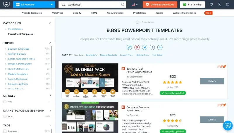 TemplateMonster’s library includes thousands of website templates, plug-ins, graphics, and even stock audio. They also have a collection of over 20,000 presentation designs including nearly 10,000 PowerPoint templates.