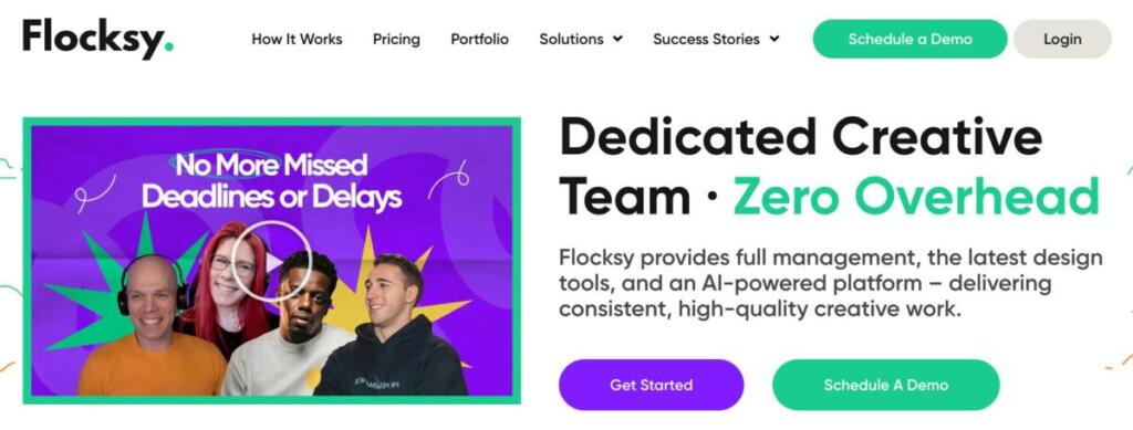 Flocksy is a great option if you want more than just graphic design. They also offer writing, video editing, and even voiceovers. This makes it a strong choice for businesses that want a full creative team without hiring multiple freelancers.