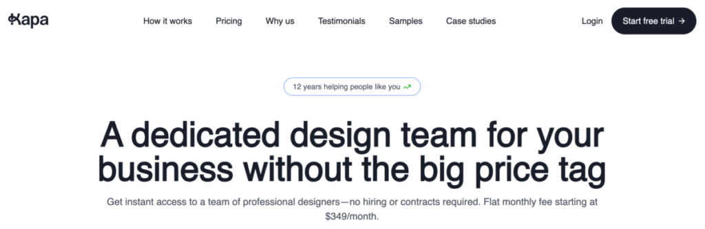 Kapa99 focuses on simple and reliable design work. They offer unlimited requests and revisions and have a very straightforward process. It’s ideal for small businesses that want steady design support without complicated features.
