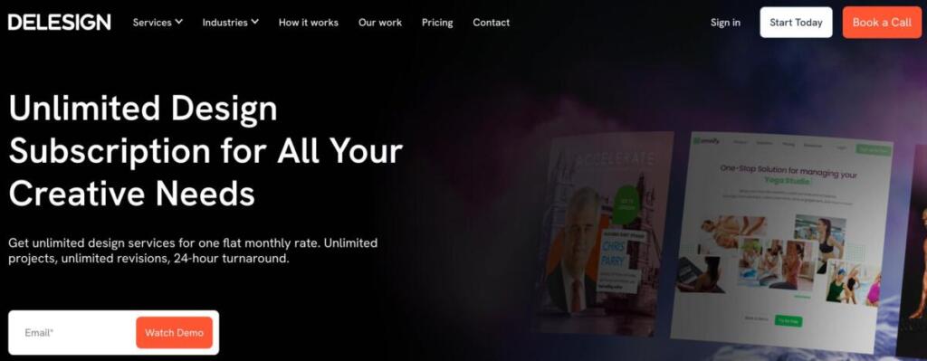 Delesign gives you unlimited graphic design and pairs you with a designer who works in your preferred timezone. This makes communication easier and helps you get faster feedback. They also offer motion graphics and web design.