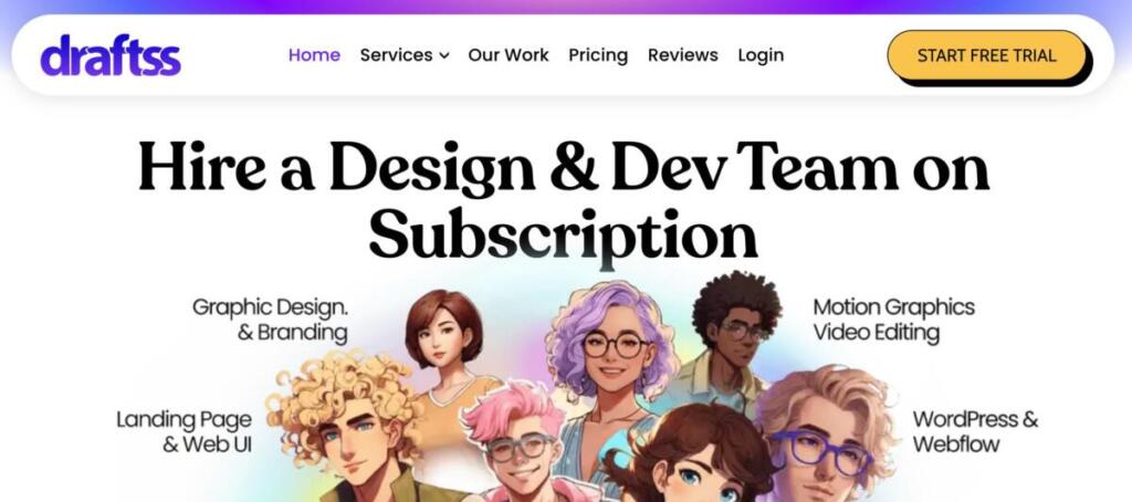 Draftss is a budget-friendly service that offers unlimited design tasks. They also include UI and UX design, which many competitors don’t. This makes Draftss a good choice for startups building apps or websites.