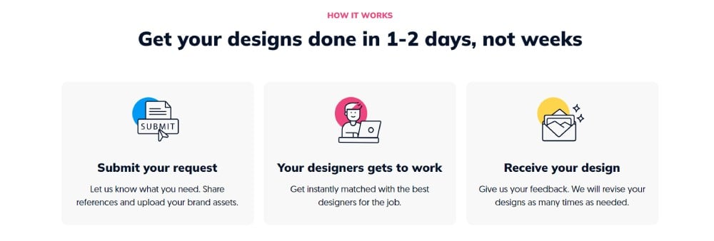 - Designated Designer Plan: Same-day delivery, with real-time communication via Slack